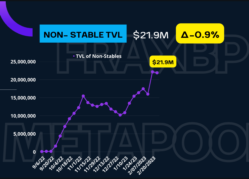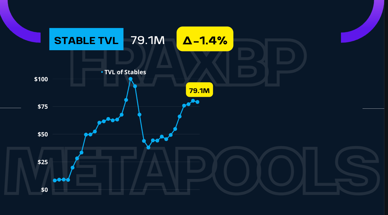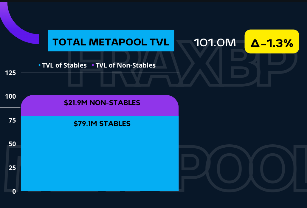 So, adding all of the stables and non-stables TVL, we have a total of $101M of liquidity paired against FraxBP – down 1.3% this week.