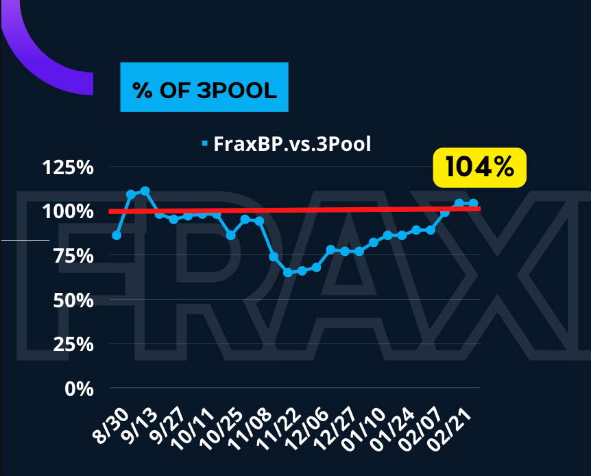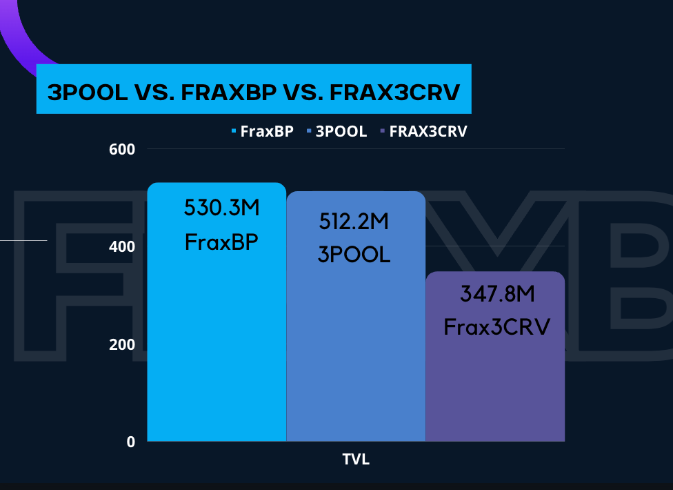 Now, we march forward to my favorite section of the Frax Check.  Ladies and gents, we are… drumroll…. STILL at 104% of the 3pool.  The FraxBasedPool is $530.3M versus 3pool's $512.2M.  Now, it wasn’t easy to get to the top but now we gotta stay at the top.  Also note that Frax3CRV saw a massive drop in TVL of nearly $100M.