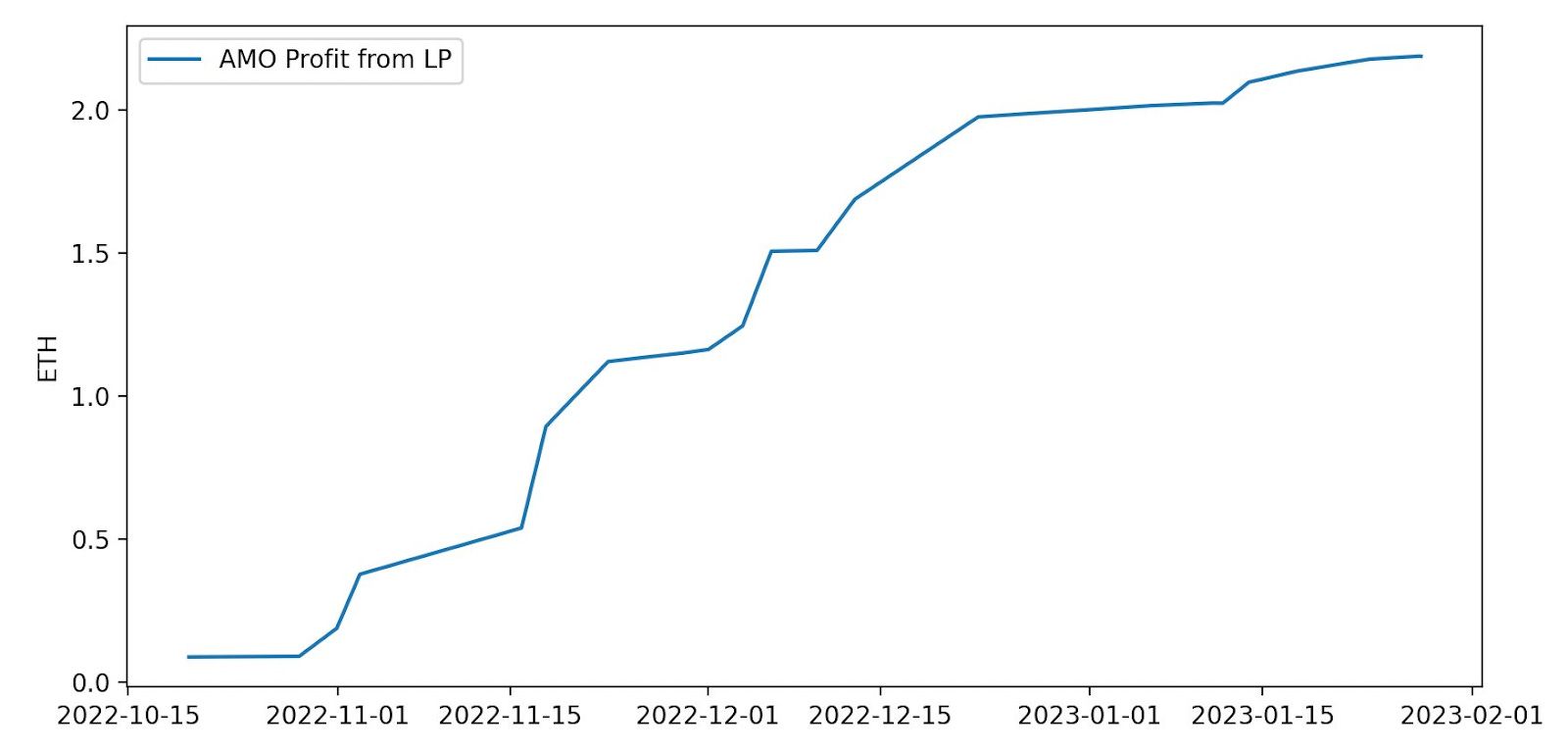 The image below shows the lifetime arbitrage profitability of frxETH AMO’s deposits into the Curve pool. Notice that it has realized zero losses and that it has only generated profits thus far. This means that it has acted in a way which always puts the pool into balance, never out of balance. To date, the AMO has been performing exceptionally well and the system remains fully solvent.