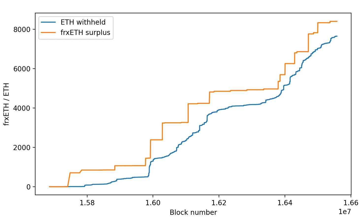 Technically, during the course of normal operations, the total supply of frxETH in the system will exceed the amount of ETH in the system (withheld ETH + beacon chain ETH). However, this does not mean that the system is insolvent, or has bad debt. Rather, because the surplus is owned by the AMO’s LP position, it can be removed from the pool at any time to burn the debt and recover the ETH required to match user’s redemption. In fact, if the pool becomes overweight with frxETH, this will allow the AMO to withdraw it and burn this debt at a discount.