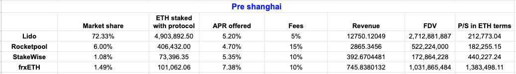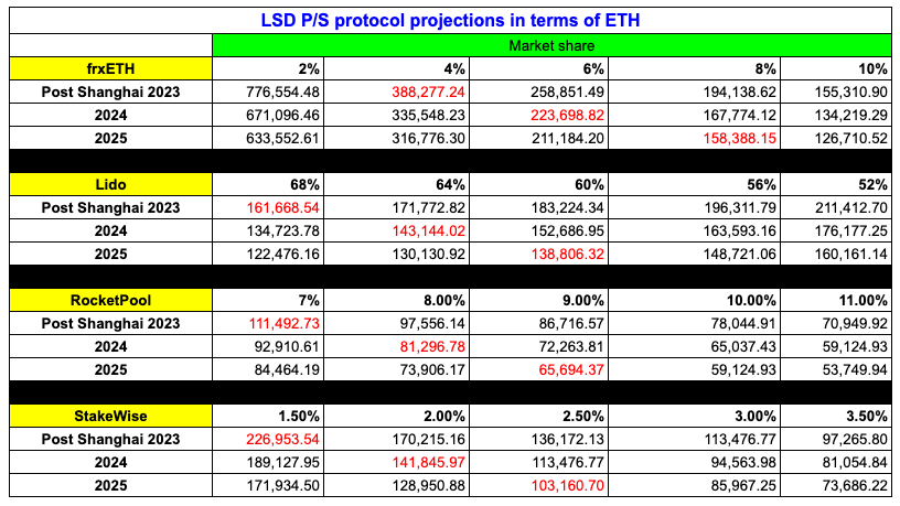 The table above is the current P/S ratio of the top 4 LSD protocols. Frax performed the worst due to its high FDV. However, it should be noted that Frax not only offers LSD services, but it has other products under its belt with $1.51B in stablecoin issuance. Frax is the only protocol to have a revenue-sharing model with the native token, where veFXS holders are entitled to 8% of the staking yields. With frxETH’s impressive growth to obtain 1.49% market share in a mere 4 months, it is clear that frxETH will continue to grow so long as its yields are higher than its competitors.