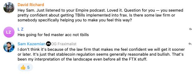 What does this mean for Frax? Well nothing at the current moment. Until the SEC publishes their complaint, it will be unclear the scope of their enforcement. For what it’s worth, the SEC is loathe to enter into drag out cases that can go on for years, like the XRP case. They have a history of going for settlement against actors who would rather not fight for years in court. For now the stablecoin business model is safe, but the recent actions by the Biden administration are worrying.