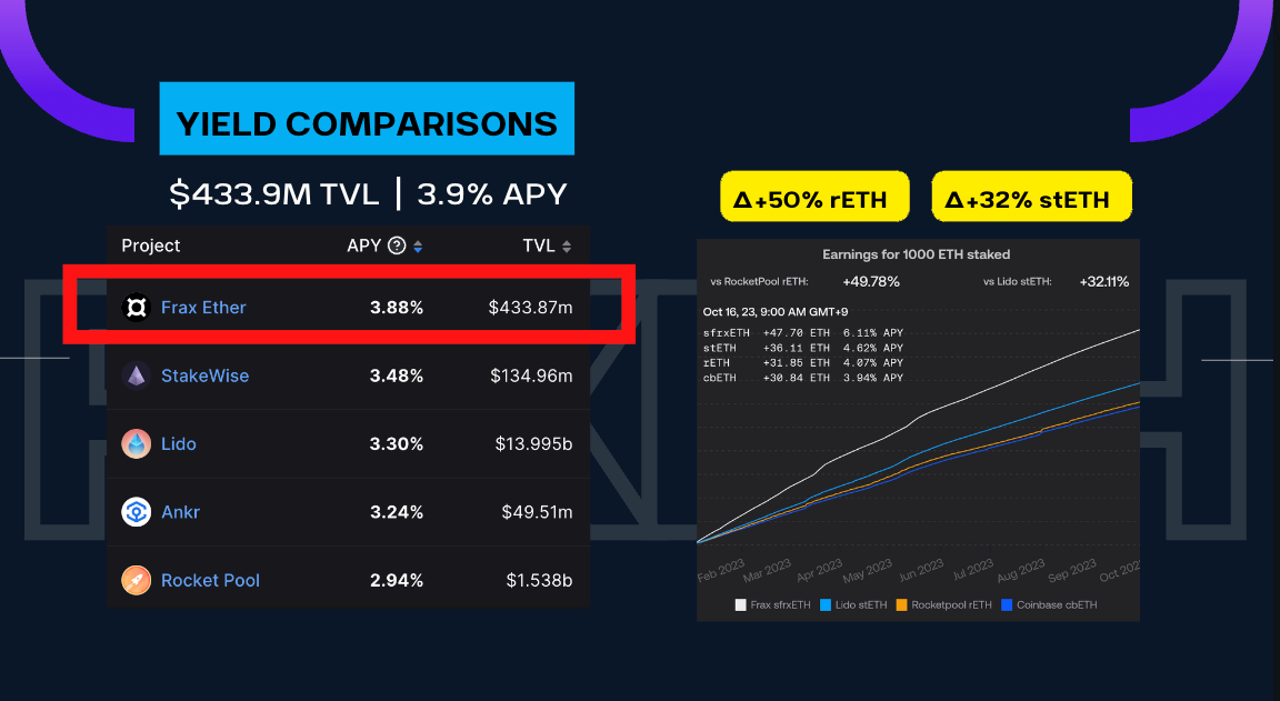 Even though frxETH is paying out the highest yield at 3.9%, our growth rate pales in comparison to others. What's more frustrating is that YTD, frxETH has grown faster than rETH by 50% and stETH by 32%.
