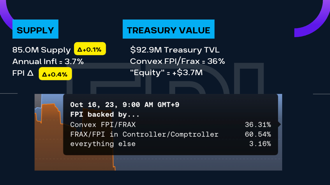 The final stablecoin: FPI. The Annual Inflation Index also is at 3.7%. Good thing that the FPI is still above Peg by 40 basis points. The treasury consists of $92.9M with an excess equity of $3.7M.