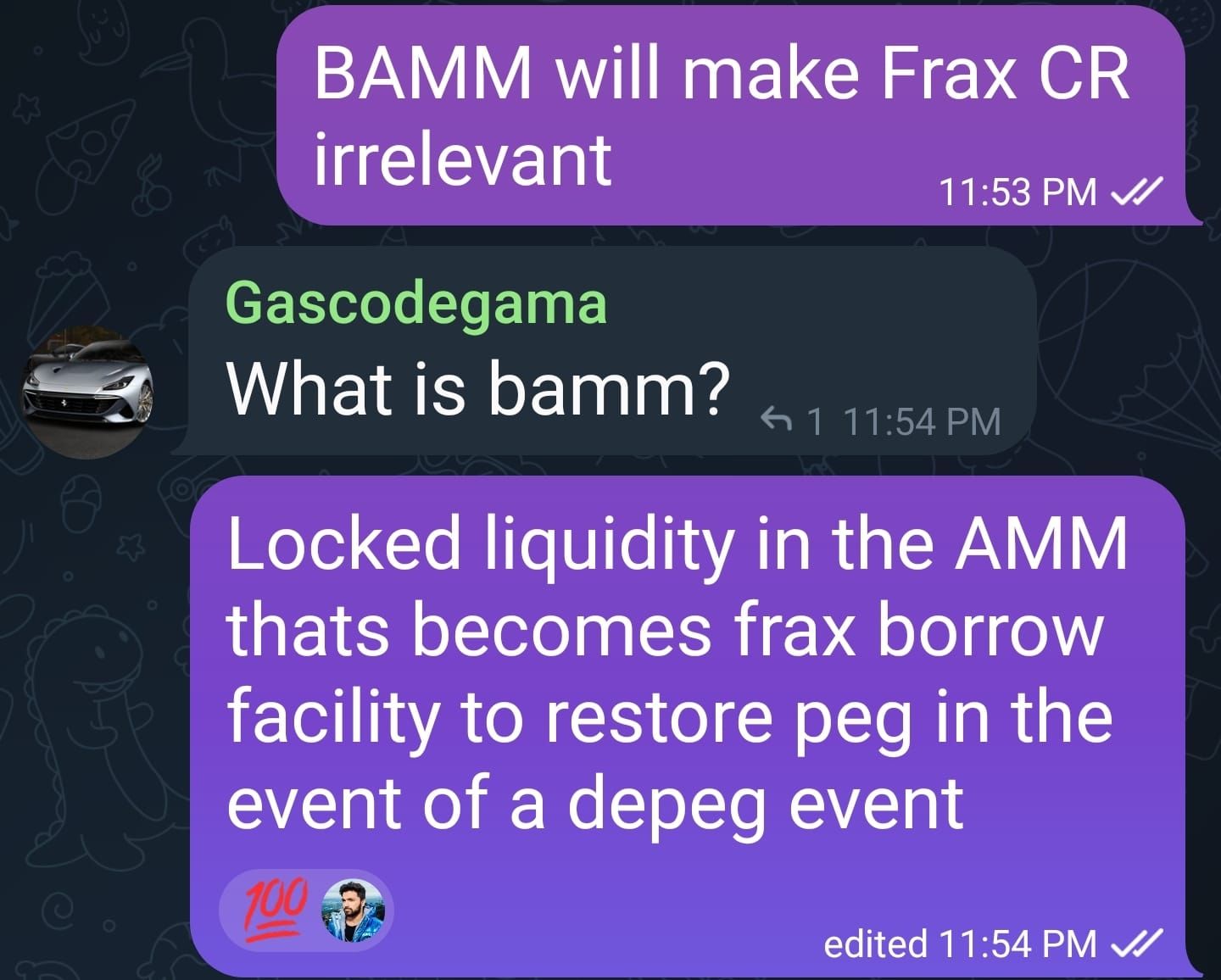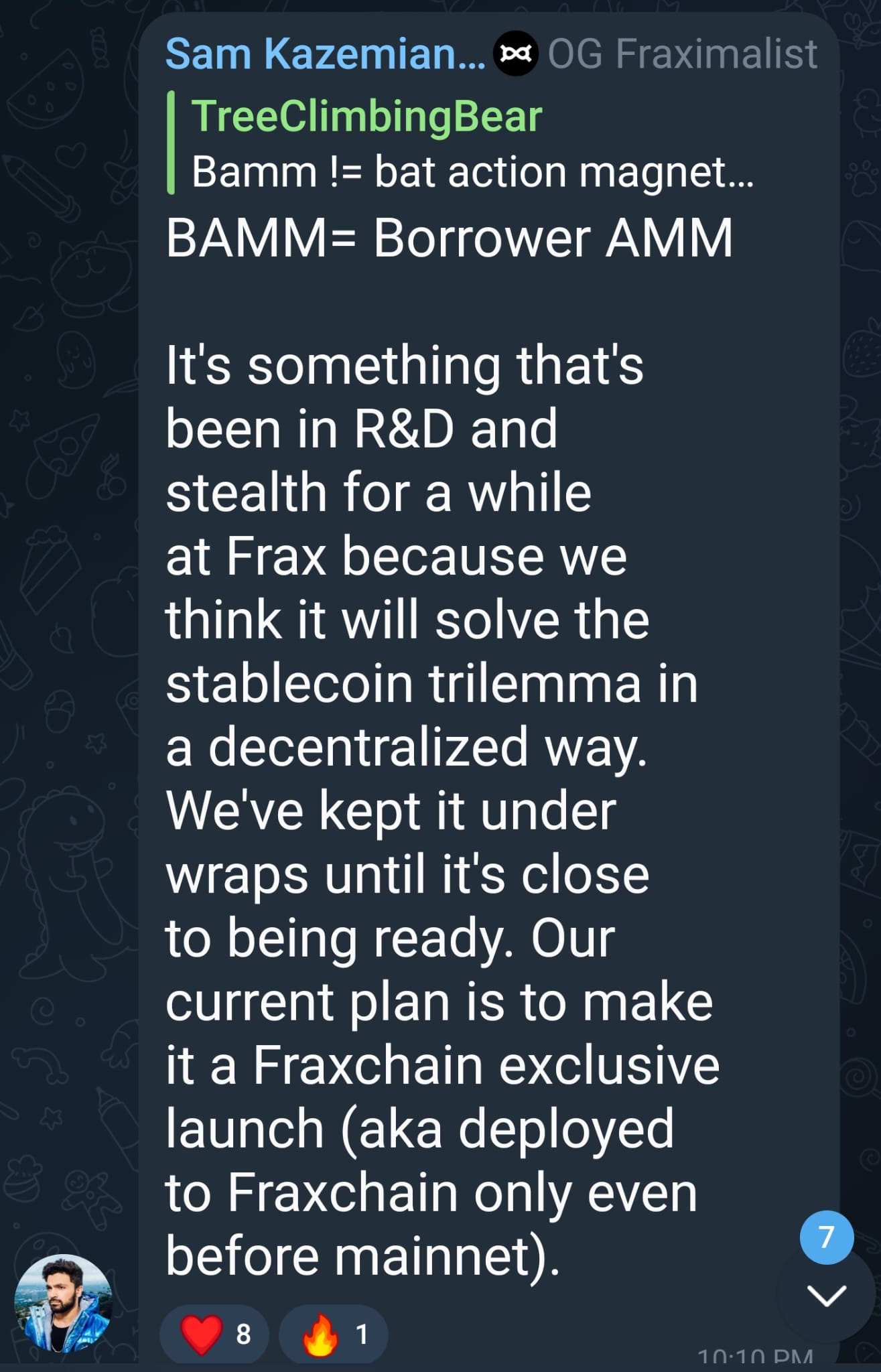 Sam Kazemian would give us tidbits like, “BAMM will allow Frax to keep USD peg even if USDC depegs” or “BAMM will allow for locked liquidity in an AMM” and “solve the stablecoin trilemma”.