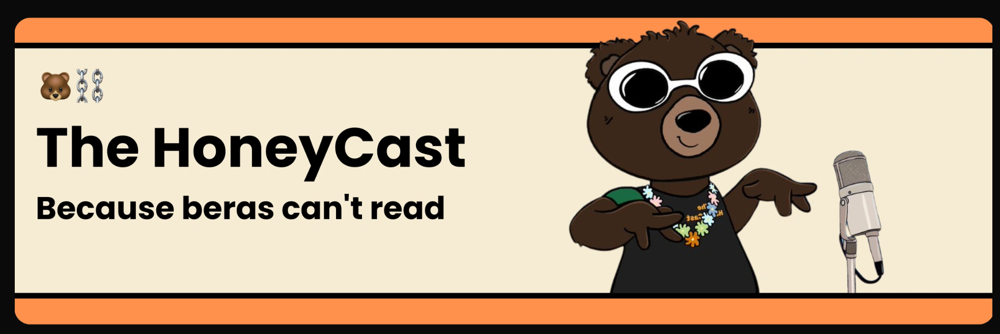 The Flywheel DeFi podcast of the Berachain ecosystem. Hosted by the one and only Tez, with it’s bera production style, the HoneyCast brings on founders and key players in the eco to highlight their projects, new features or simply sit by the fire and yap. Be sure to tune in to learn how to speak bera and for all the alpha.