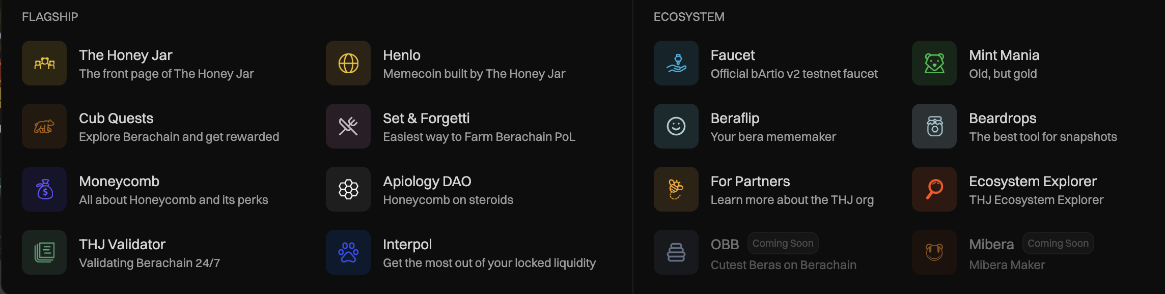 THJ has several Flagship projects for users to easily engage and become a part of the broader berachain community from a grassroots level.