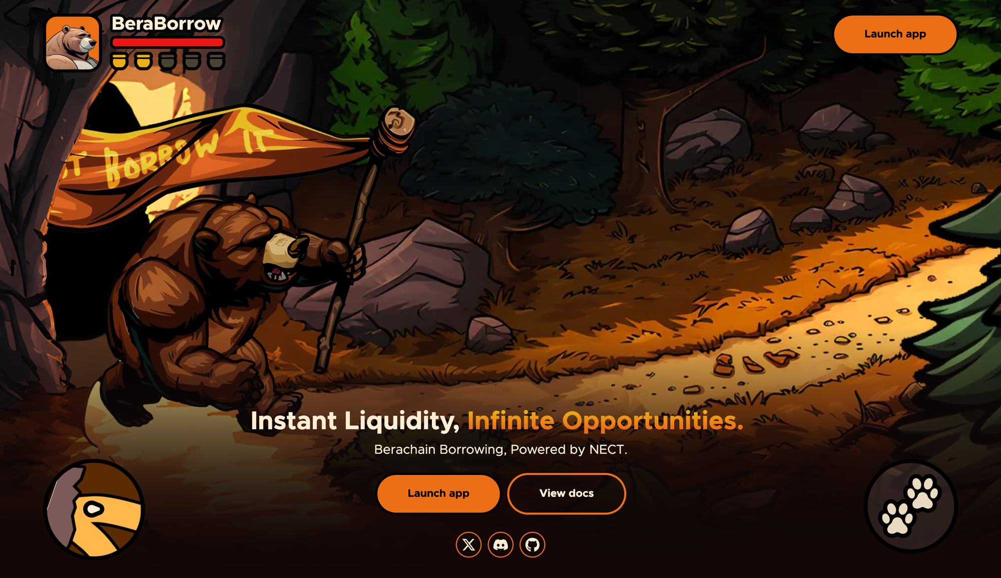 BeraBorrow offers instant liquidity for users who seek to borrow. This lending protocol provides Nectar ($NECT) the first over-collateralized PoL powered stablecoin. Users can deposit various collateral types i.e. Berachain native tokens, LSDs or LP tokens into their "Dens" to mint $NECT. By using BeraBorrow users do not need to sacrifice any price exposure or yield when borrowing and minting $NECT in addition to it capturing PoL emissions. Additionally, their native token $POLLEN acts as the incentive token to help stabilize the protocol by promoting the adoption of $NECT. Users are able to borrow, pool, and redeem their collateral debt positions through their seamless UI. Like most projects on Berachain, their native NFTs are the Big Fat Beras.