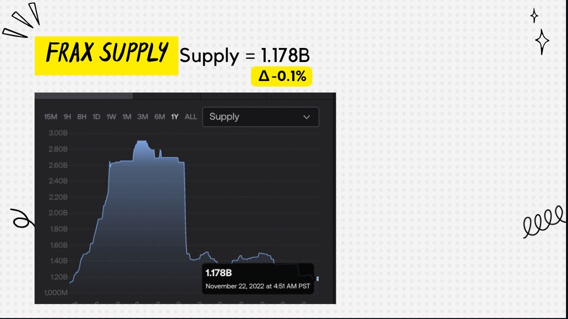This is the % that conveys how much FXS (algorithmic) is used as collateral.  I want to highlight the collateral ratio for the OUTSTANDING FRAX aka non-Frax controlled.  A reminder, Frax protocol owns a lot of its own FRAX and theoretically, Frax won’t ever redeem its own underlying collateral backing so the only real collateral ratio we should monitor is that of the OUTSTANDING FRAX, which currently sits at 87.5%.  Following we have the Decent %.  We are slightly off the lows with a 13.1%, which is an 1.8% increase from last week’s Frax Check.  V v v v much bear market vibes across the board when it comes to these two metrics.  We want to see the Collat % going back to the low 80s and the Decent % going back to 30s.