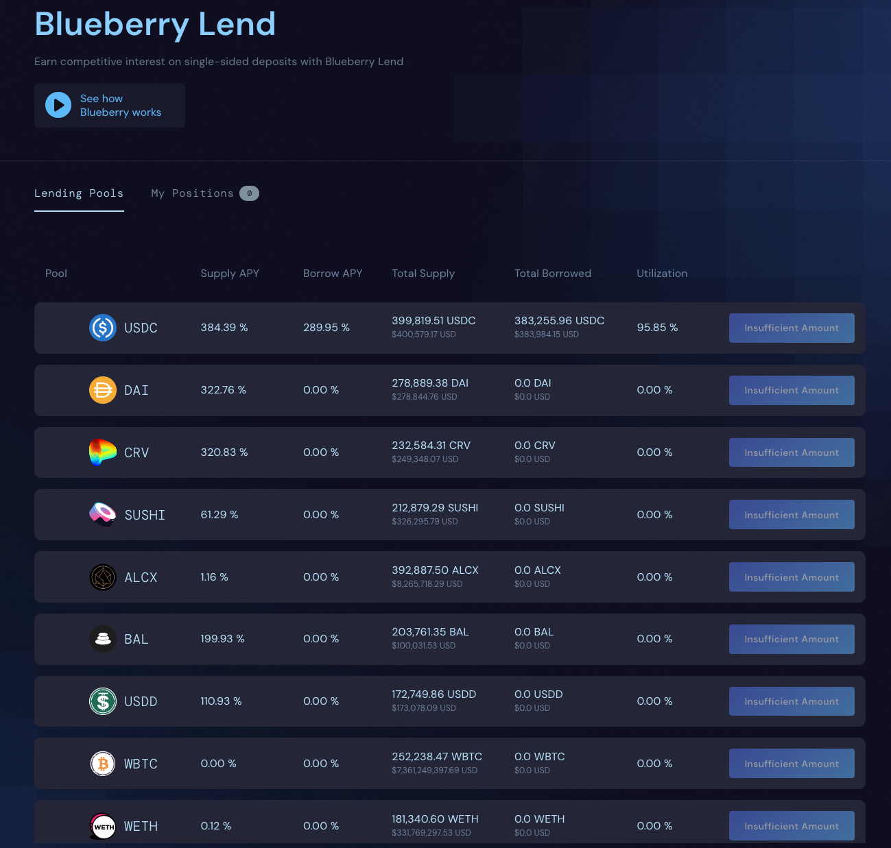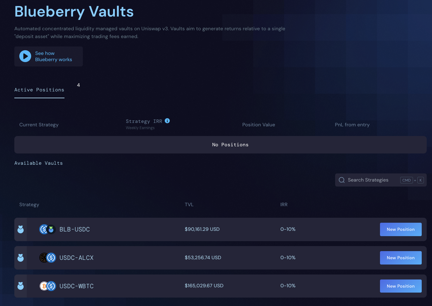 So if you want to go leverage farm Curve with 5x leverage, you would deposit one asset, and then borrow more of another and the entire process would be handled by the execution system built by Blueberry. Assets can only be deposited into pre-approved strategies, limiting risk to the borrowers.
