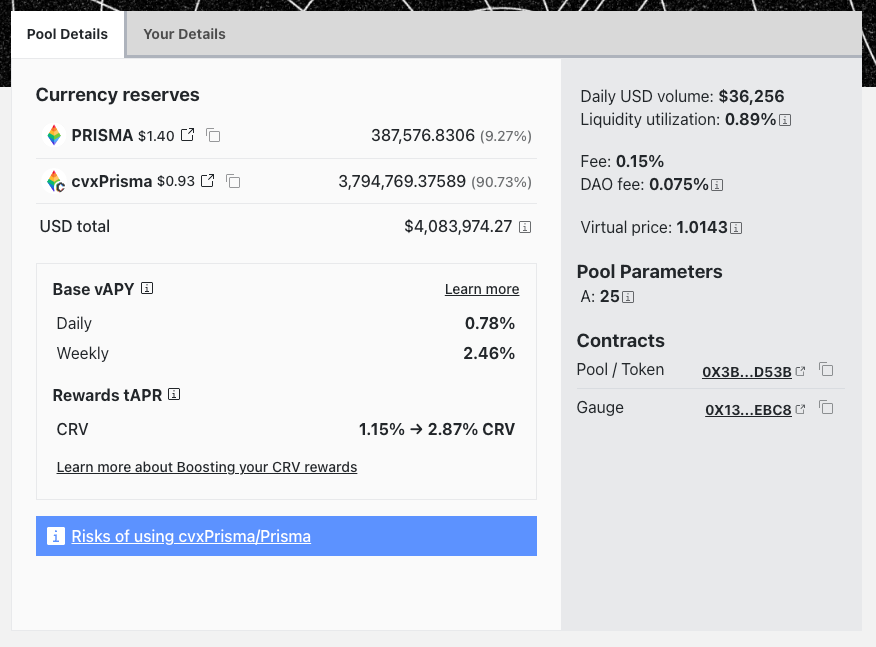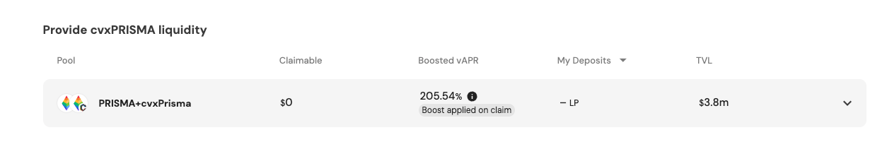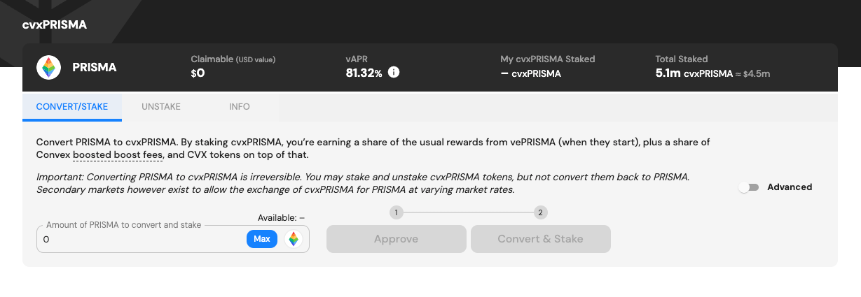 As of writing this article, cvxPRISMA is earning 81% APR in PRISMA rewards.