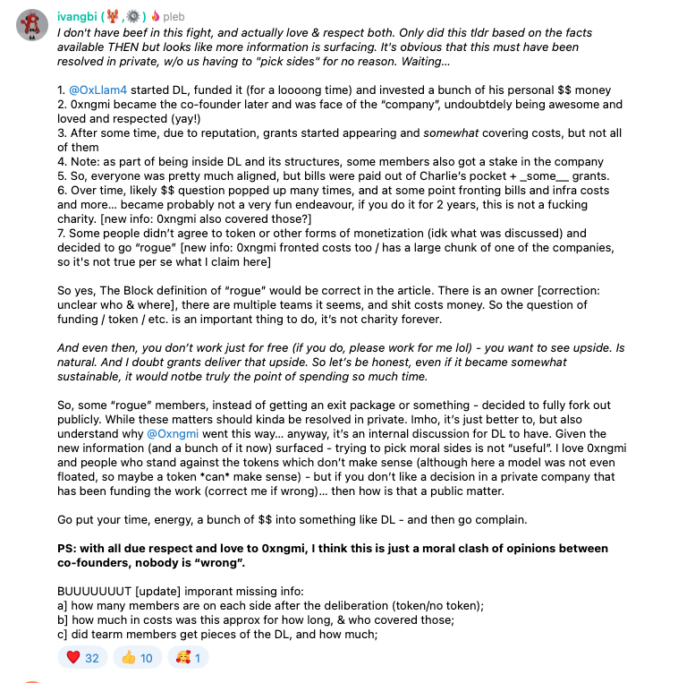Update: Charlie and 0xngmi seem to have figured things out and the official Twitter announced there would be no token and that the LlamaCorp would continue to work together.