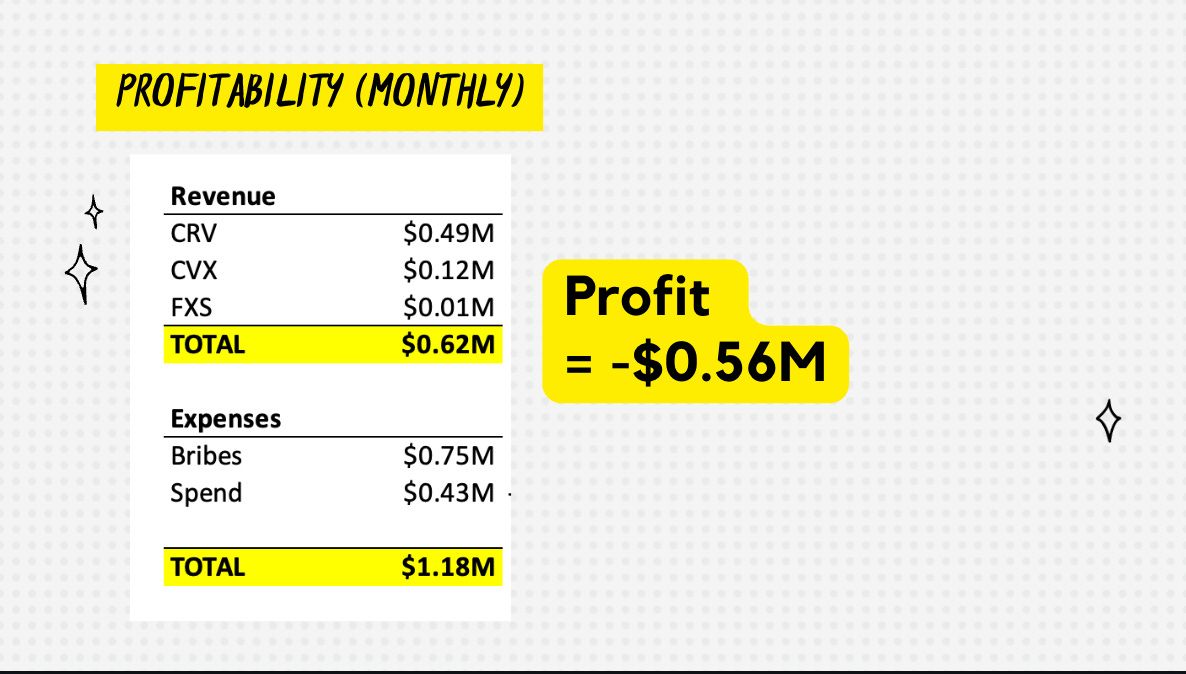 Onto the profitability of the Convex AMO.  We’re now at $620k in Revenue for the month of December so far.  We paid roughly $750k in bribes plus the monthly opex of $430k for expenses.  Therefore, for December we have a loss of $560k currently.  But it’s still very early so let’s keep our hopes up.  Upward and Onward champs.