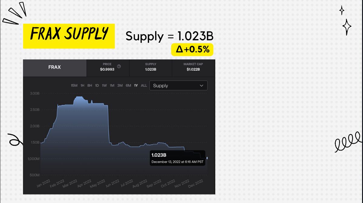 Lastly, the main reason why we track all of this is to make sure the FRAX supply could grow as big as possible. This week we're at 1.023B, which is a +0.5% move.  We’re flirting with that 9-figure digit line and I don’t like it.  We need to keep our eyes on the prize and grow this number.  But expect this number to go down a bit, IF the Frax team decides to rebalance the Curve AMO and the FraxBP.
