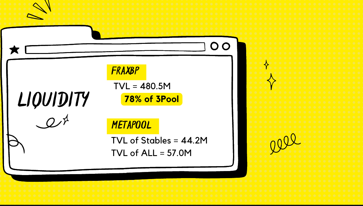Summary time.  Liquidity Check.  FraxBP is 480.5M which is 78% of 3Pool.  The MetaPool is at $44.2M for stable pairs.  And TVL of All pairs (stables + non-stables) are at $57.0M.