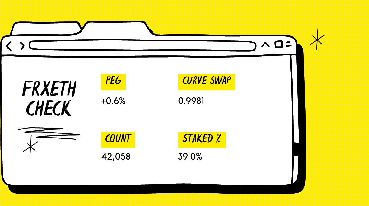 The count is at 42,058.  And look at that chart, I know you can’t read it but just appreciate the verticalness off that graph.  “Straight Tubular bro’.”  +32%.  Hot.  On the staked side we see that 39% of all the frxETH is being staked to earn the ETH native staking rewards, which is 5-7% but since only about 40% frxETH is staked, sfrxETH stakers get a boost in their staking rewards.  But also important to note that folks who are so deep into DeFi are so dam efficient.  Literally less than 0.5% of the frxETH supply is just sitting naked, every other frxETH is put to work.  Like the CapitalOne commercials: “What’s in your wallet?” Better not be WETH!  Let’s do a quick summary check.
