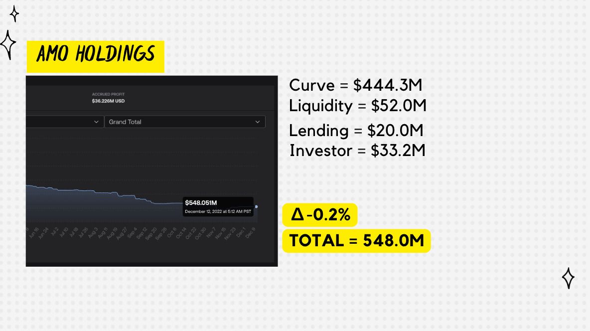 Quick summary money check.  AMO holdings was $549M, +0% WoW.  Profitability, for November was down bad but we’re early into December so fingers crossed.