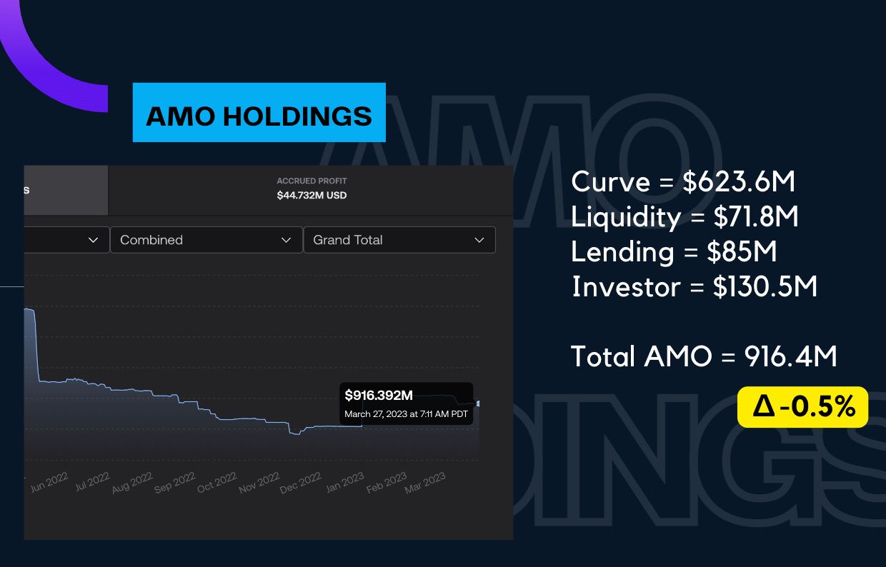 Finally, let’s jump into our profitability section starting with an overview of the AMO holdings.  The grand total of all AMOs is at $916M, we experienced a 0.5% decrease over the last week.  The Curve AMO is $623M, Liquidity AMO is at $72M, Lending $85M, and Investor $131M.  It’s going to take us quite some time to regain all these assets into the treasury from the shakeout from USDC but Flywheel DeFi will be here every week reporting in on every step of the journey.
