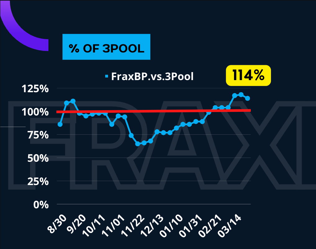 1. FraxBP - 114% of 3Pool, down 4% from last week’s FraxCheck