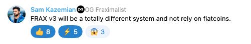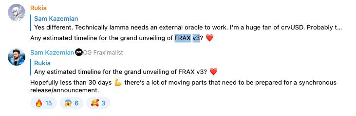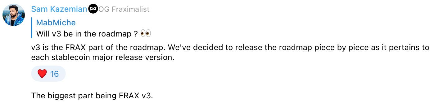 Kazemian first made comments about Frax v3 in response to an anon asking about if the Stablecoin would see updates.