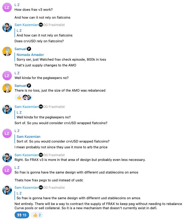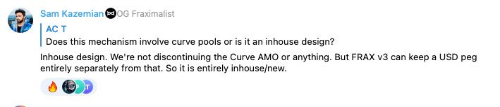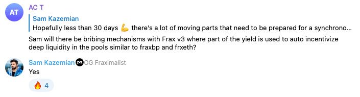 In true Frax fashion, a random anon in the Telegram chat drew out never-before-made-public details about the upcoming product release of Frax v3.