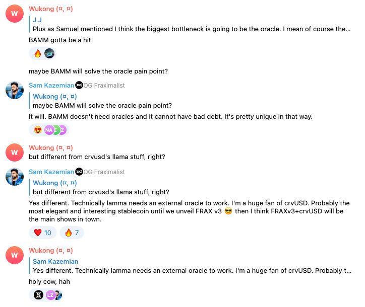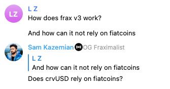 Wukong asks Sam Kazemian about crvUSD, gets an answer about Frax v3.