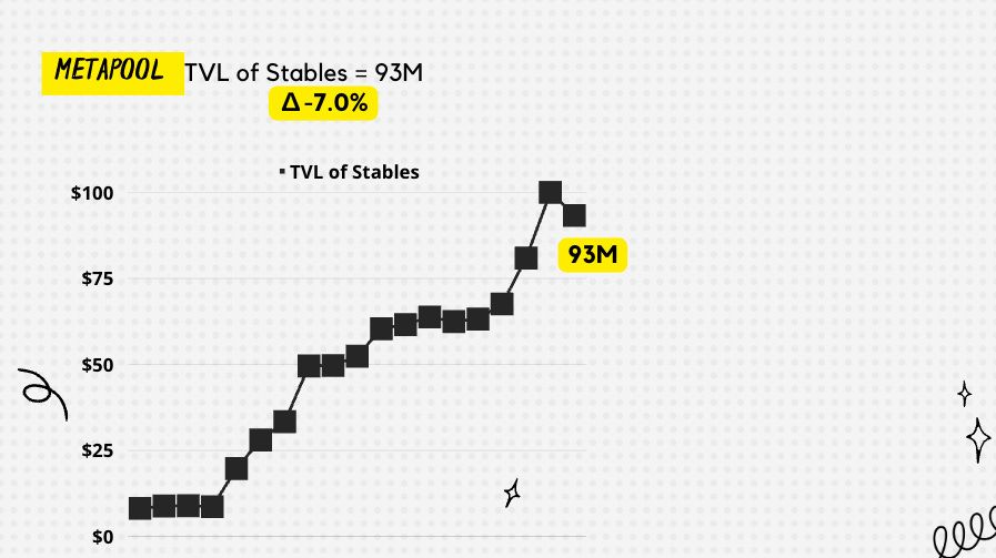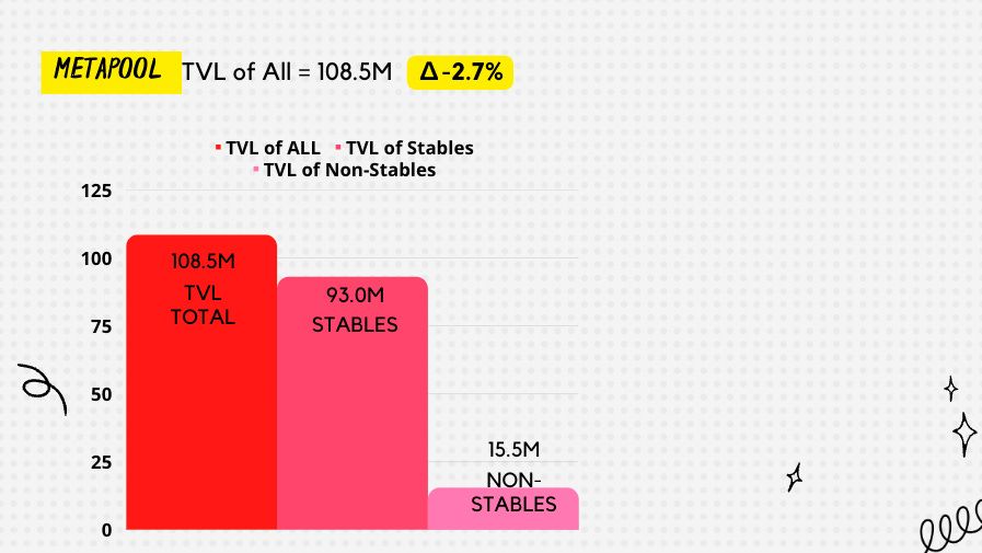 Reminder the metapool are pools that are PAIRED with the BasedPool, examples like LUSD/FraxBP.  The Metapools went down a bit to 93M, so down 7% from last week.  Let’s get us back to that 9 FIGURE CLUB BABY.  Any projects out there looking to work with the Metapool, please join the Flywheel pod TG chat and DM any of the hosts for assistance.