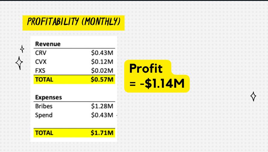 Onto the profitability of the Curve AMO.  We’re now at $0.57M in Revenue for the month of October.  We’re obvs down in Nov, since the month just started.  We paid roughly $1.28M in bribes last week for the rewards to come this week..