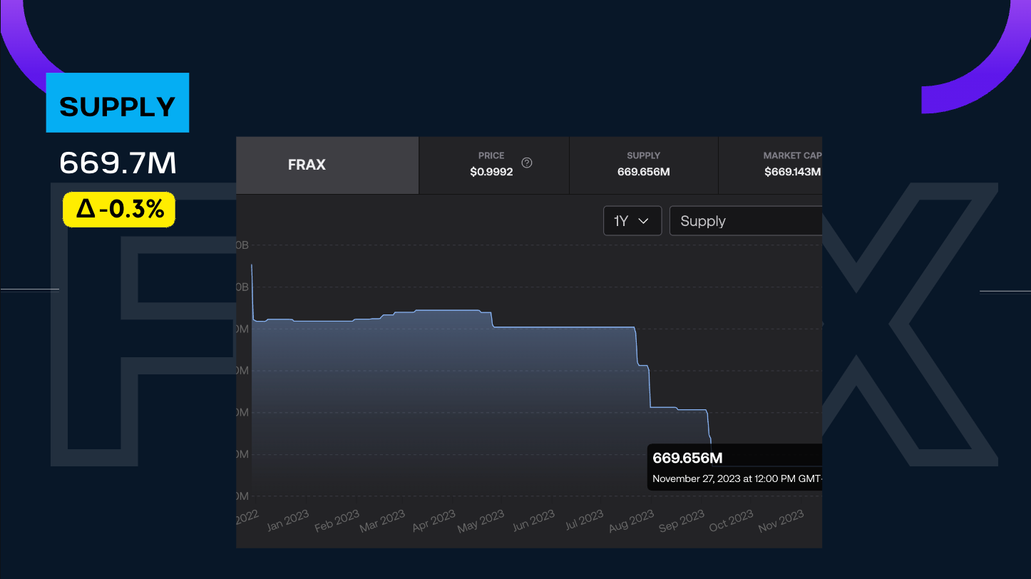 FRAX supply dipped down (-0.3%) to $669M for the first time in 2 months – maybe this is just for the meme. Nothing else to report here, moving on the peg.