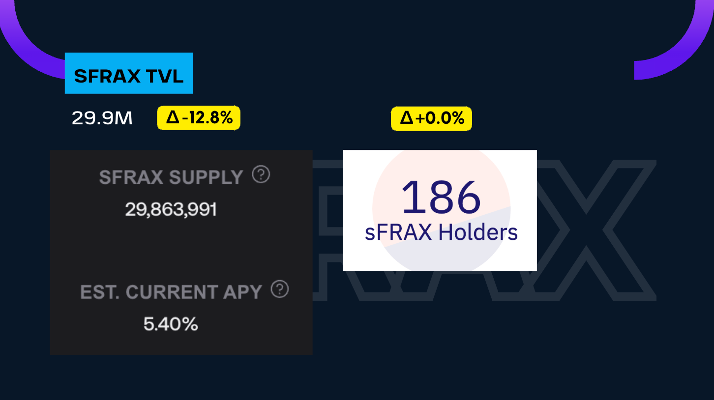The APY at the time of writing is 5.4%. There are 186 sFRAX holders, which is holding steady for the month. But we suppose it's normal to see a decrease in TVL as the market becomes more risk-seeking.