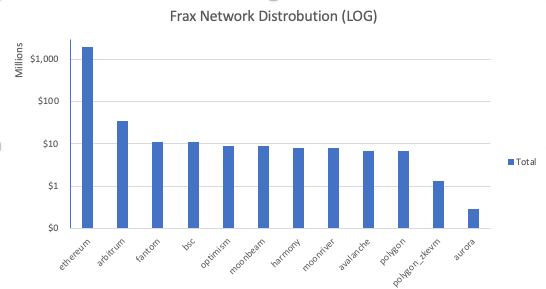 Exploring the balance sheet, the craziest thing that immediately pops out is the lack of distribution across networks. Ethereum is the big daddy and guarantor of Frax’s security and over $2bn Frax is parked there. Arbitrum has the highest amount of Frax outside of ETH with $34m. Just based on these numbers alone, there is significant scope for Frax to expand to other networks.