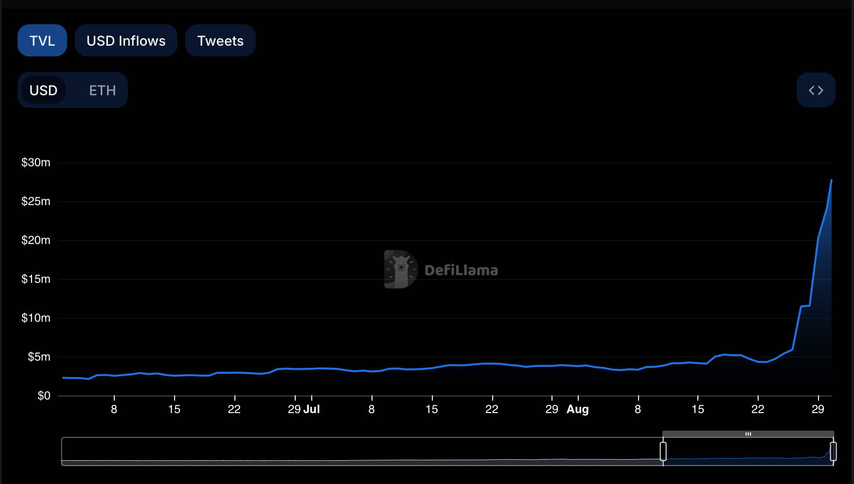 Welp. Hope you enjoyed farming Dyad at cheap prices. Over this last week, inflows to Ethereum's hottest new stablecoin increased 10-fold, rocketing to almost $30m.