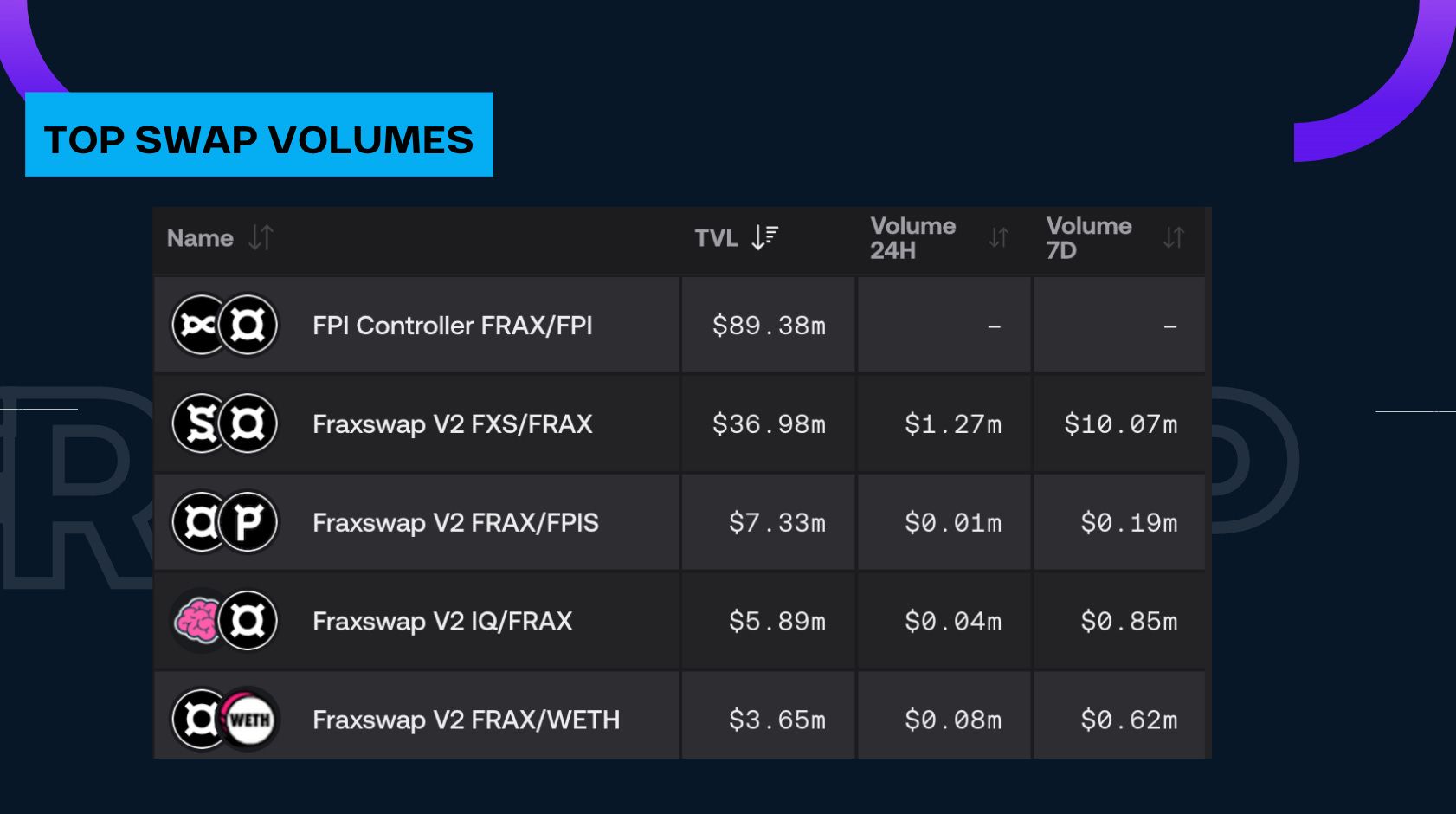 If you know, you know. Fraxswap, the underdog of all Dex’s, not very well known but it’s consistently pushing and maintaining massive amounts of volume; especially this week!
