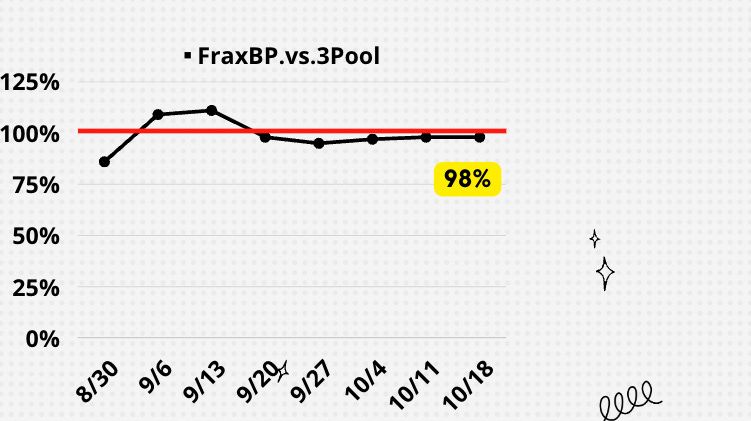 Here's my favorite section of the Frax Check.  The Liquidity Check.  My fellow Fraximalist... we are… MAINTAINING THE GAP!  We’re keeping at 98% of the 3POOL, we were 98% last week.  The FraxBasedPool is $820M versus 3pool's $836M.  The basedpool saw a decrease of -1.7% in TVL, while the 3POOL say a similar drop in TVL.  The BasedPool is 98% of 3Pool.   However, the FraxBasedPool is still much larger than the Frax3CRV pool, nearly 30% larger.  Tune in next week to watch the reflippening – maybe.