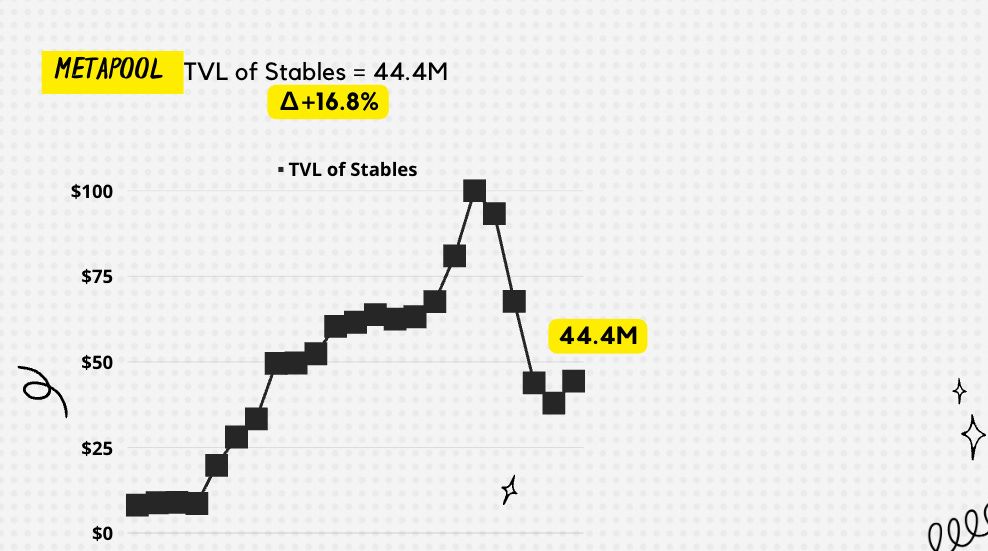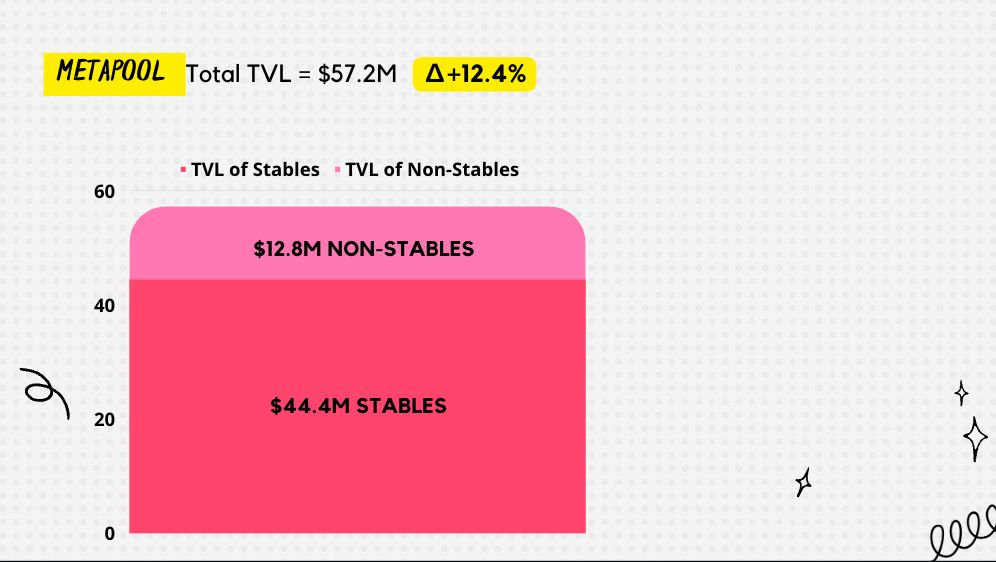 Reminder the metapool are pools that are PAIRED with the BasedPool, examples like LUSD/FraxBP.  We had a significant bounce this week of 17% up to $44M.  We got as low as $38M last week so I’m glad to see this relief bounce. Any projects out there looking to work with the Metapool, please join the Flywheel pod TG chat and DM any of the hosts for assistance.