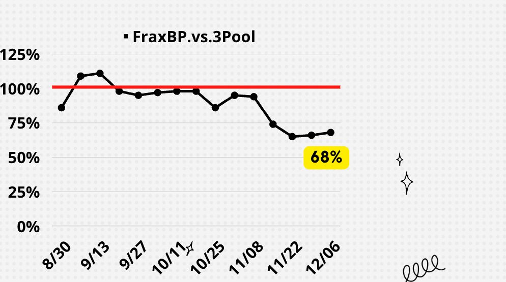 Here's my favorite section of the Frax Check.  The Liquidity Check.  Do you guys remember the theme of this week, it was “Holiday Bounce”  We’re at 68% of the 3POOL.  Insert meme “+1%”.  The FraxBasedPool is $450.4M versus 3pool's $663M.  The basedpool saw a decrease of 1% in TVL.  But what’s more troubling is that there’s an imbalance in the FraxBP pool right now of nearly a 25/75 split between USDC/FRAX but since the slippage is manageable the Frax team hasn’t rebalance the pool yet.  Also note that the Frax3CRV pool is ABOVE the FraxBP.  This is the first time it’s flipped since it passed the Frax3CRV.  We need to monitor the situation.  Moving on, let’s chat about our metapools.