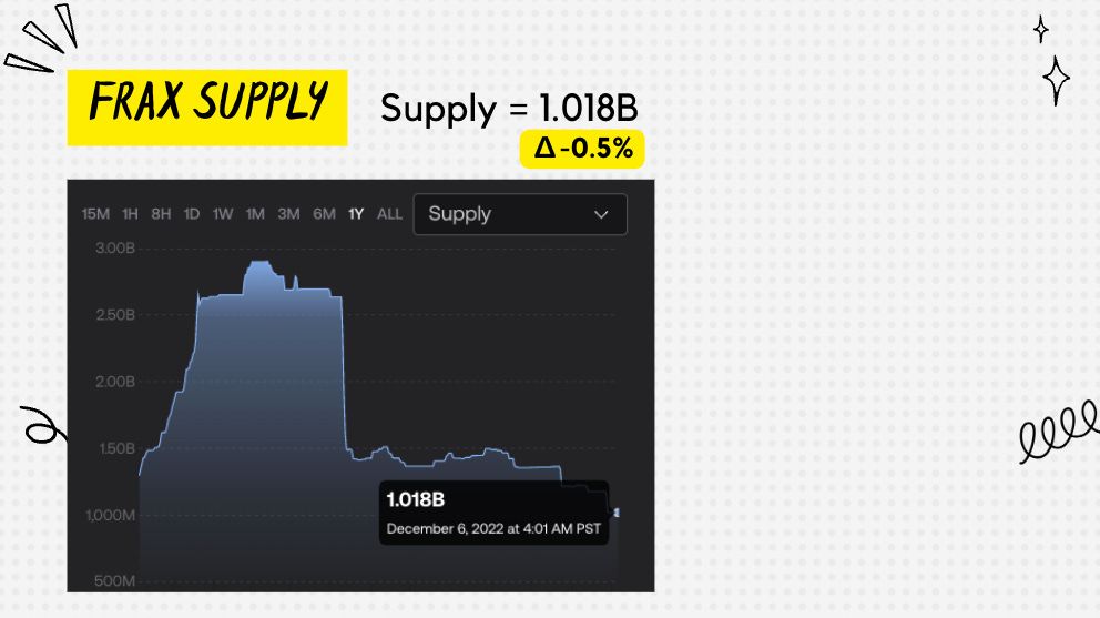 Lastly, the main reason why we track all of this is to make sure the FRAX supply could grow as big as possible. This week we're at 1.018B, which is a -0.5% move.  We’re flirting with that 9-figure digit line and I don’t like it.  We need to keep our eyes on the prize and grow this number.  But expect this number to go down a bit, IF the Frax team decides to rebalance the Curve AMO and the FraxBP.