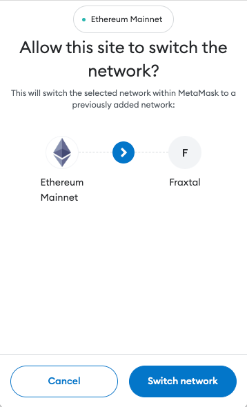 2. Click "Switch Network" to add Fraxtal to Metamask