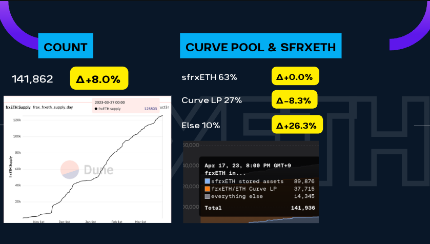 After Shapella we saw some amazing momentum on frxETH with a weekly growth of 8% this week!  We’ve been hanging around the low single digits growth for the past few weeks leading up to Shapella but now we know it was all that pent-up demand finally unleashing!