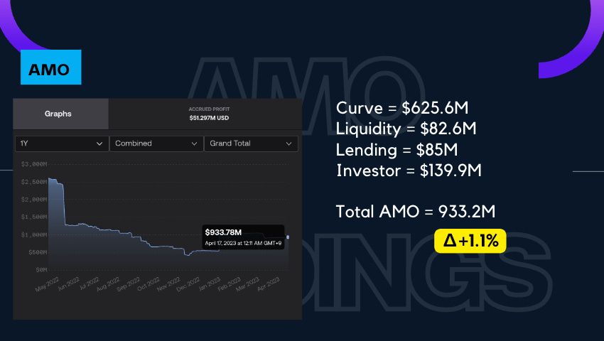 The AMO experienced a nice 1.1% bump this week, leading us to $933.2M.  The Curve and Lending AMO remained flat.  The Liquidity and Investor AMO saw an increase of about $5M each.