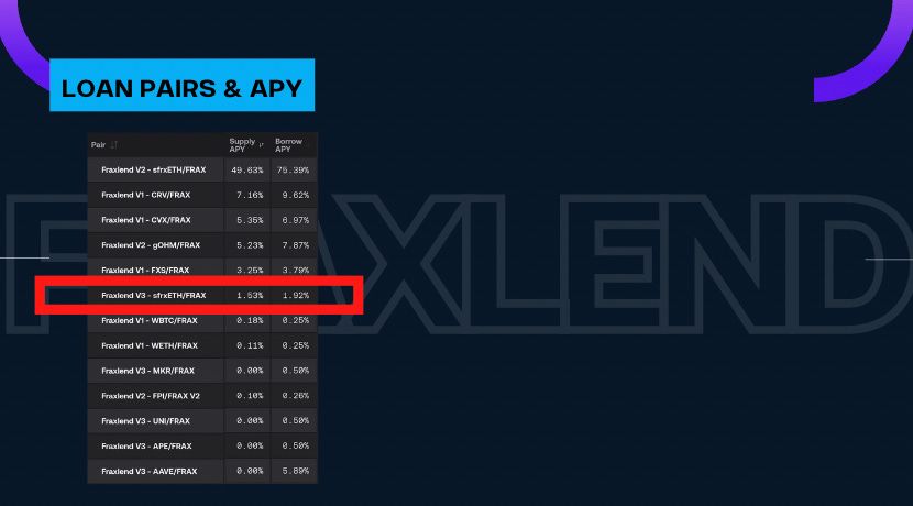 One of the pillars of the DeFi Trinity is lending leg so here we have FraxLend. Unfortunately this week there’s a technical issue with the FraxFacts dashboard for the FraxLend page so we were unable to pull the metrics.  Though we were able to look at the pairs and we saw some interesting things.  We have a new pair AAVE/FRAX added to the mix.  On the other hand, the sfrxETH/FRAX is still only putting out 1.92% borrow rate with a staking yield of 6%.  And of course, the ol’ reliable CRV/FRAX is putting out steady yields of 7%.