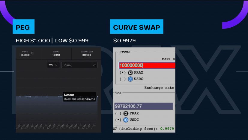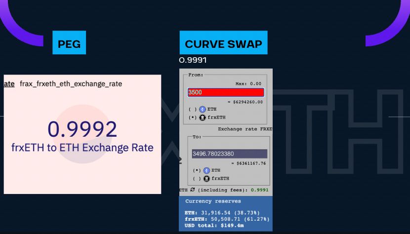 Reminder, frxETH is still a stablecoin, just a stablecoin pegged to ETH instead of the dollar. So we must check the peg. Here the dashboard shows 0.9992, a fairly strong rate, but we can’t just rely on dashboards. In the markets, we swapped 3.5k frxETH for ETH via Curve and received an exchange rate of 0.9991, which is also a very strong exchange rate. Arguably, one of the best rates in the LSD landscape.