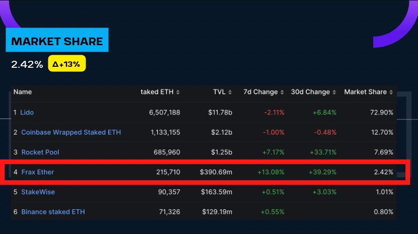 2. frxETH // ∆ +11.9% and breaking 200k frxETH