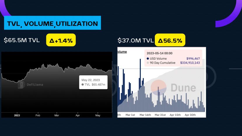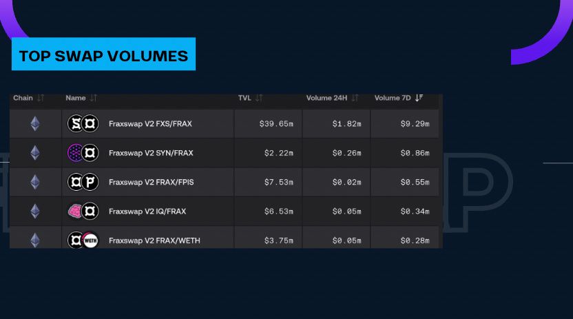 Lastly, we have the final leg of the DeFi Trinity with FraxSwap. We like to call this the Dex that no one talks or knows about but it’s pushing out major volume relative to its size. There are only 65.5M TVL across all the pools yet it facilitates $37M in volume which is a 56.5% utilization rate, and the month is not over!