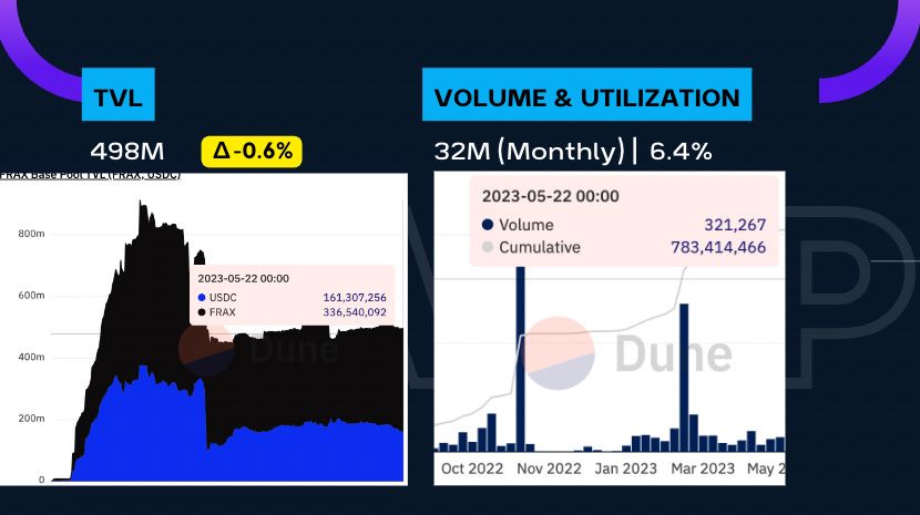 For Frax’s liquidity-as-a-service in the form FraxBP, we have 498M TVL which experienced a 0.6% drop. The volume is at 32.2M so far for May, which is only a 6.4% utilization rate, fairly low when compared to what happened in March with the USDC fiasco.  The LPers in the FraxBP and all the associated metapools are positioned to facilitate large liquidity-required swaps but we feel that idle capital could be put to use.  If only Frax had something planned for this, oh wait, there is.  It’s called BAMM — more info soon.