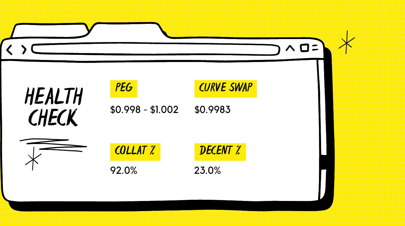 Okay.  Quick summary Health Check.  Peg Good.  Curve Swap unchanged  Collat % could be better been stagnant.  Decent % may be in a reversal to the upside.