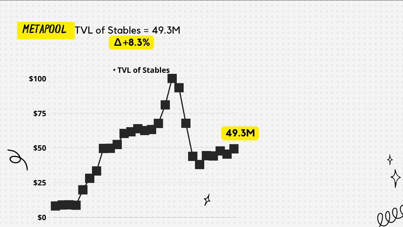 Reminder the metapool are pools that are PAIRED with the BasedPool, examples like LUSD/FraxBP.  We’re at $49.3M, an increase of 8.3% from last week.  But we just can’t seem to break above the $50M level for the past 8 Frax Checks.  C’mon people, we got some yield and liquidity for your community, so come and get some!  Any projects out there looking to work with the Metapool, please join the Flywheel TG chat and DM any of the hosts for assistance.