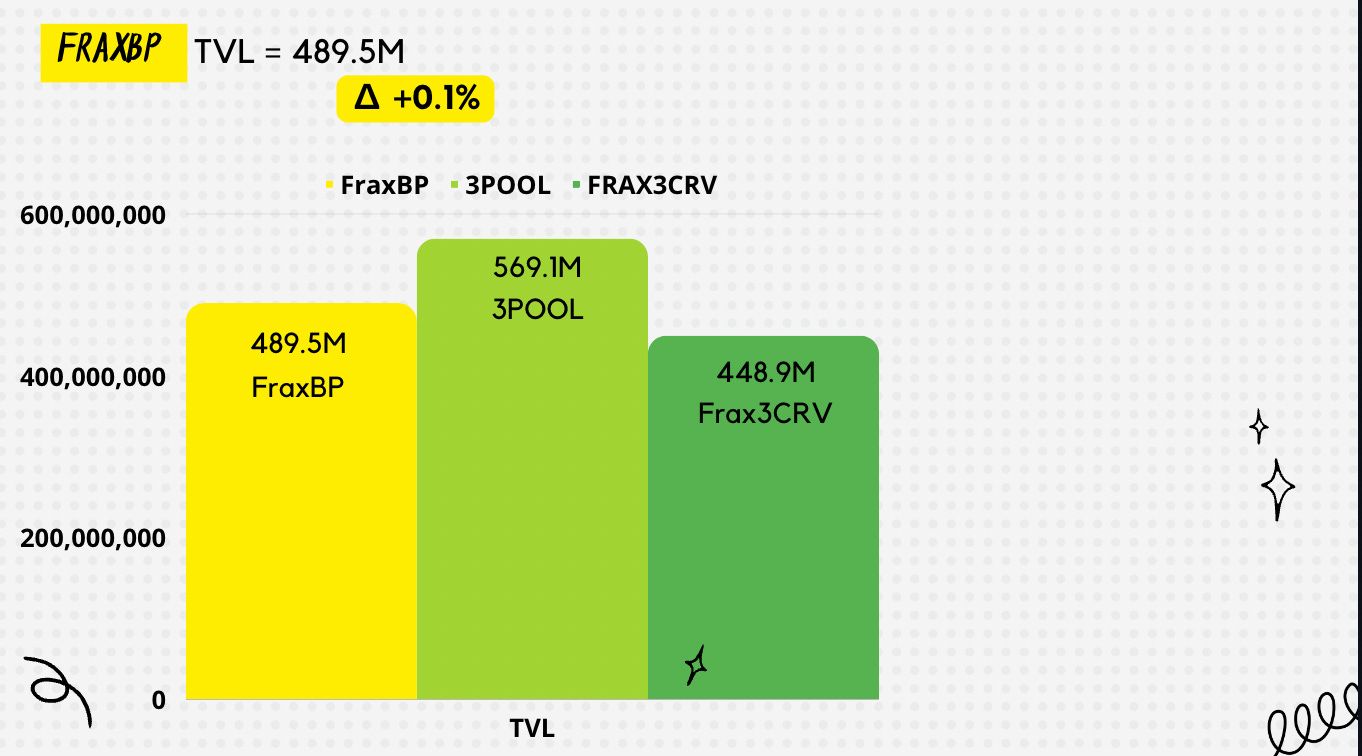 Here's my favorite section of the Frax Check.  The Liquidity Check.  Do you guys remember the theme of this week, it was “Just Keep Swimming”. Well, in this specific segment, we SWIMMING up baby.  We’re up 4% pushing us solidly into the mid 80s and we’re rocking a strong 86% of the 3pool.  The FraxBasedPool is $489.5M versus 3pool's $569.1M.  The basedpool is up small 0.1% for the week.  But what’s important here is that the 3POOL went DOWN by a good chunk almost $30M.  Note that we are STILL above the Frax3CRV pool!!!  Let’s keep the momentum going.  Stepping stones, 3Pool next.  Moving on, let’s chat about our metapools.