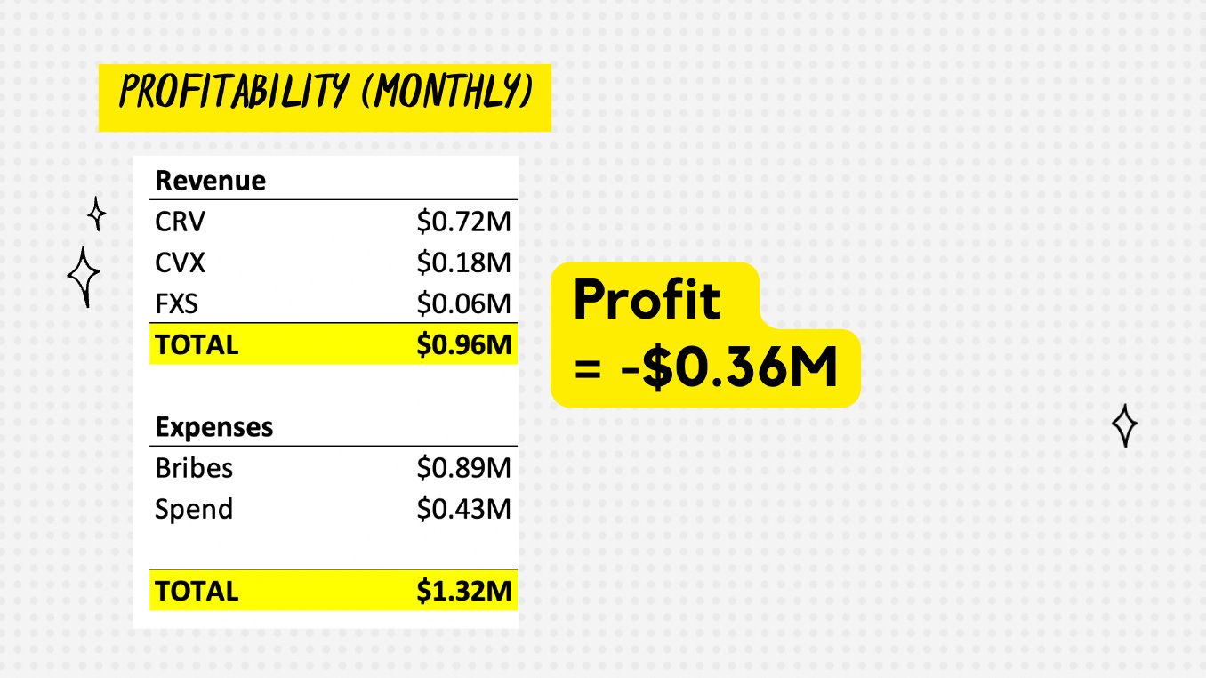 Onto the profitability of the Convex AMO.  We’re now at $960k in Revenue for the month of December so far.  We paid roughly $750k in bribes plus the monthly opex of $430k for expenses.  Therefore, for December we have a loss of $220k currently.  But it’s still very early so let’s keep our hopes up.  Upward and Onward champs.