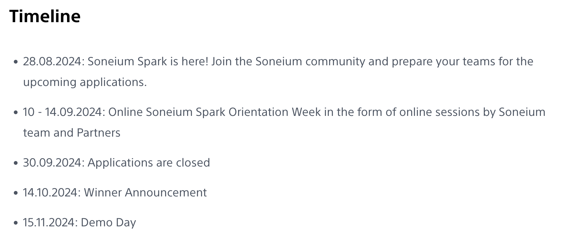 Applications for the incubator program will open in a few weeks, and the first cohort will start in mid-October. In addition to the marketing, business, technical, and financial support Soneium is offering, anyone interested in building on Soneium can potentially receive up to $100k USD in investments per team.